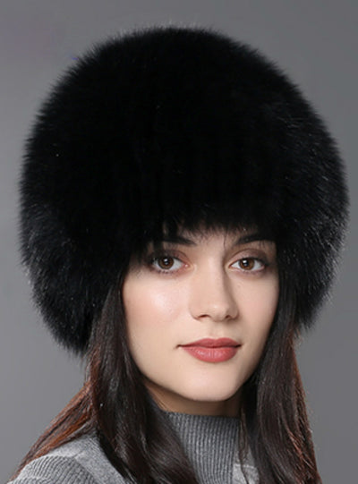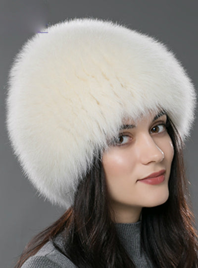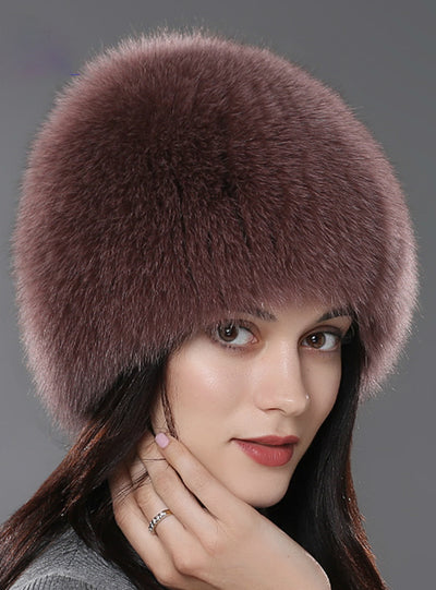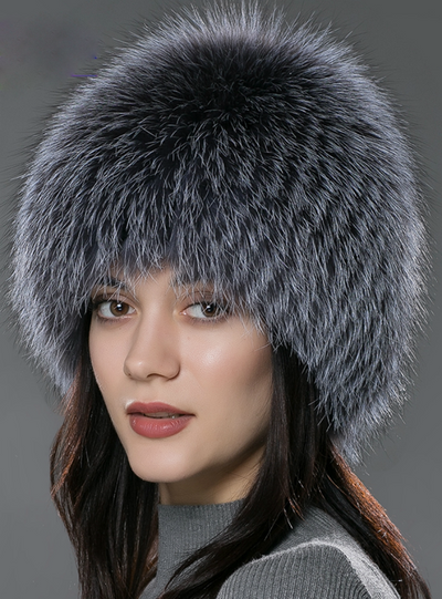 Fur Hat Genuine Fox Fur Hats Knitted Silver
