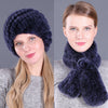Warm Pineapple Rex Rabbit Fur Hat Scarf Set