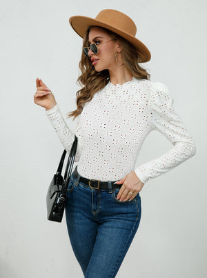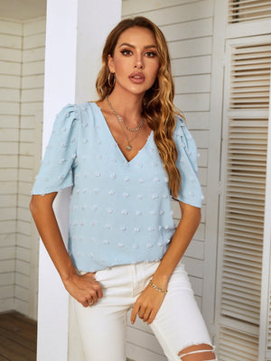 V-neck Puff Sleeve Wool Ball Chiffon Top