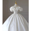 Ball Gown Satin Off the Shoulder Pearls Wedding Dress