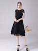 Black Chiffon Lace Cap Sleeve Mother Of The Bride Dress