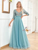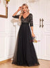 Black Sequins Tulle V-neck Short Sleeve Prom Dress