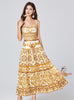 Blue and White Printed Suspender Vest+Length Skirt