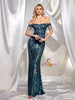 Blue Mermaid Sequins Straps Beading Prom Dress