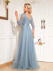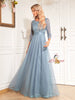 Blue Tulle Lace Long Sleeve Prom Dress