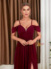 Burgundy Chiffon V-neck Pleats Prom Dress