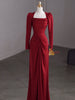 Burgundy Long Sleeve Satin Pleats Prom Dress