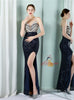 Burgundy Mermaid Sequins Spaghetti Straps Prom Dress