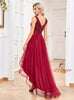 Burgundy Sequins V-neck Hi Lo Party Dress