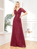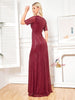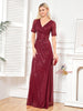 Burgundy Sequins V-neck Short Sleeve Prom Dress