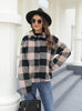 Button Padded Warm Lapel Plaid Plush Coat