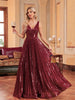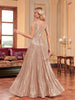 Champagne Sequins Deep V-neck Prom Dress