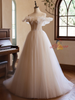 Champagne Tulle Lace Spaghetti Straps Beading Wedding Dress