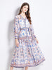Chiffon V-neck Lantern Sleeve Printed Dress