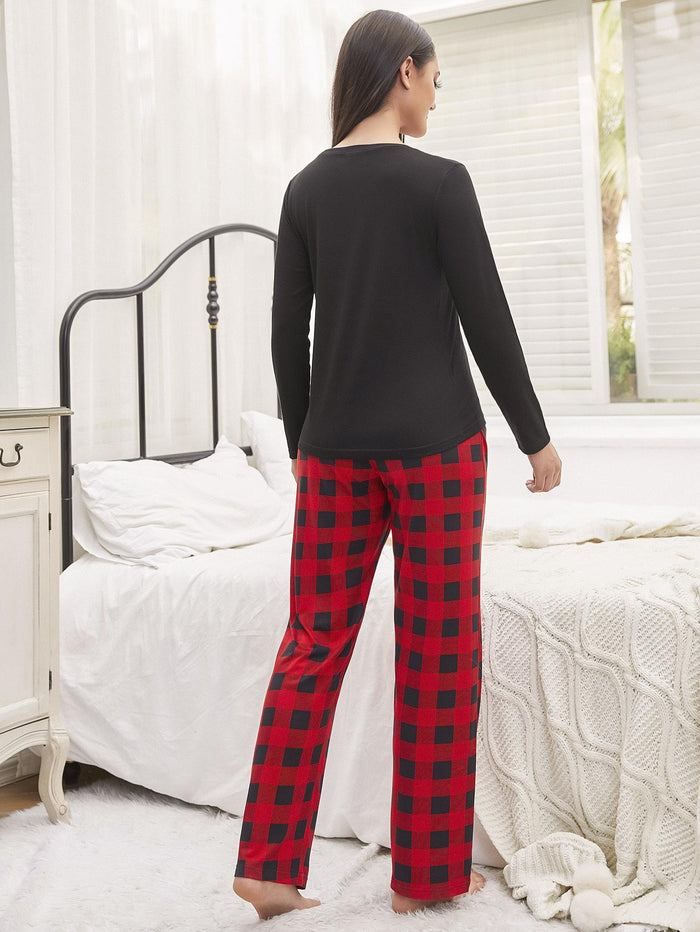 Usher in the perfect end to your day with this heart-adorned pajama suit, a blend of traditional design and contemporary flair. The black top is softened by a red plaid heart, coordinating effortlessly with the plaid pants, and both are made from a material that feels like a gentle hug. This pajama set is not just sleepwear; it's a statement of playful elegance and comfort that you'll look forward to wearing night after night.