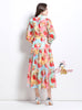 Contrast Retro Lantern Sleeve Printed Dress