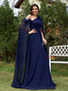Dark Blue Chiffon One Shoulder Flower Prom Dress