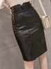 Elegant Pencil Midi Skirts High Waist Black PU Leather