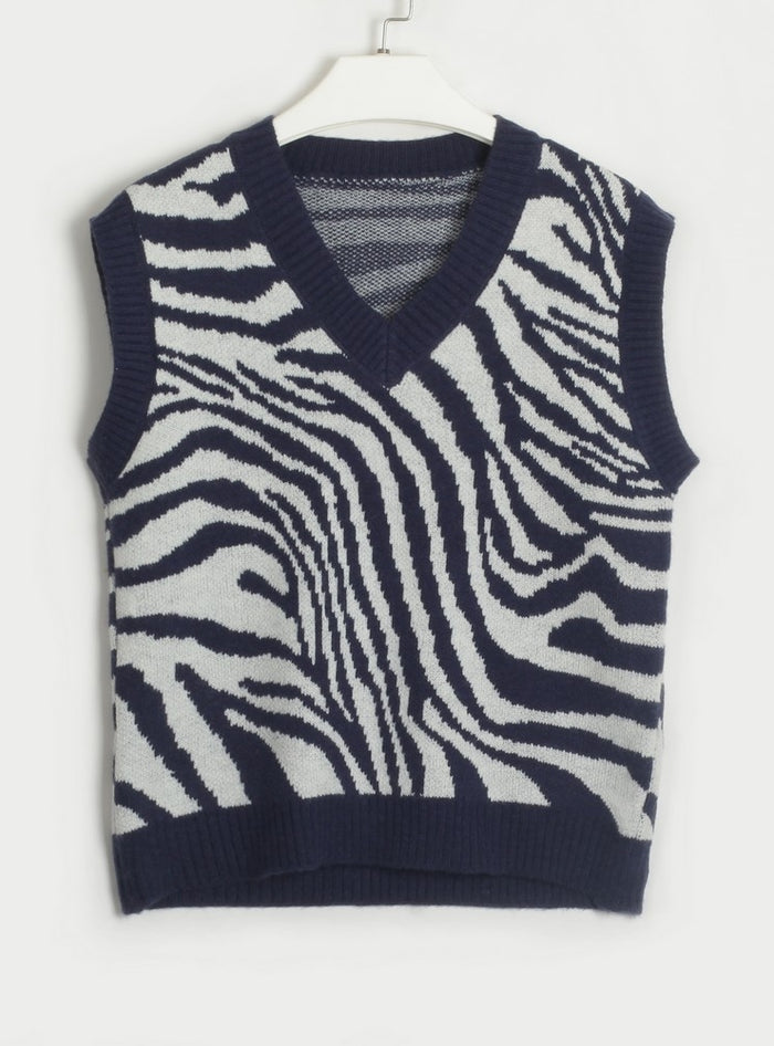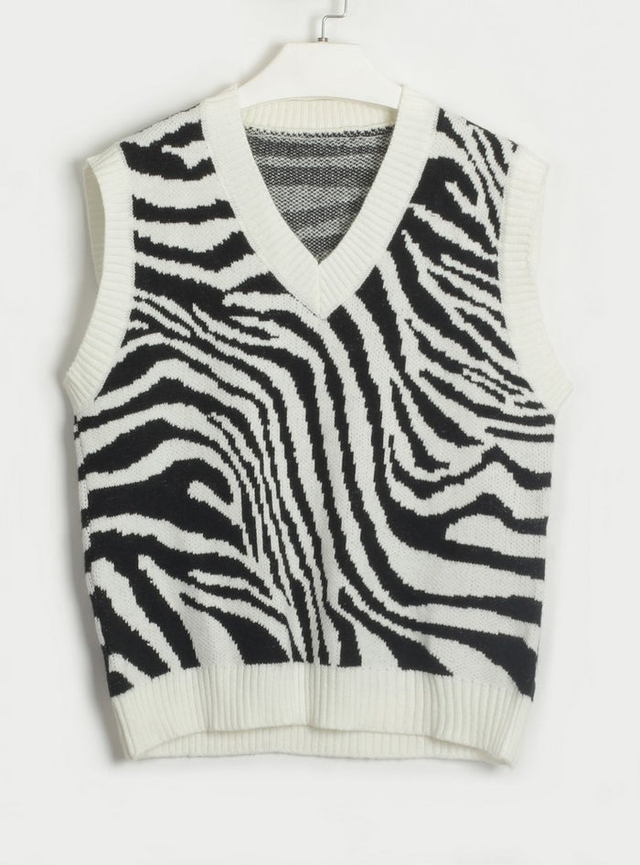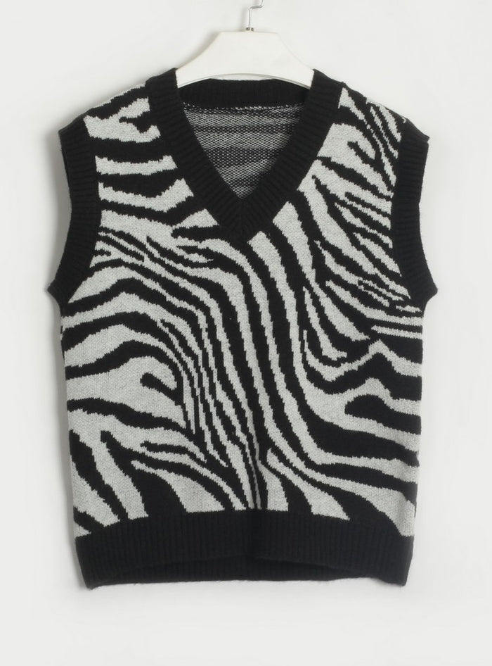 Add a walk on the wild side to your wardrobe with the Fashion Casual Black and White Animal Pattern V-Neck Sweater Vest! This eye-catching vest is crafted from a medium-gauge knit fabric with animal patterns that lend a fierce vibe to the slim bodice. A V-neck plunges down to a standard-length hem, while a sleeveless design adds a breezy touch to the mix. The black base is highlighted by contrasting white animal patterns for a look that's equal parts daring and chic. Available in an average size, this vest is a statement piece you won't want to miss.