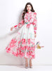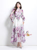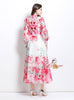 Fashion Printed Silm Waist Lantern Sleeve Dress