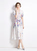Fashion Printed V-neck Short-sleeved Slim Dress
