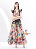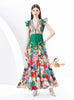 Flying Sleeve V-neck Slim Waist Printed Dress