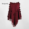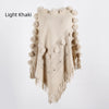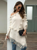 Fringe Fur Ball Beaded Round Neck Sweater Cloak