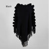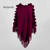 Fringed Fur Ball Round Collar Pullover Cape Shawl