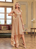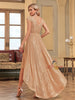 Gold V-neck Sequins Cap Sleeve Prom Dress