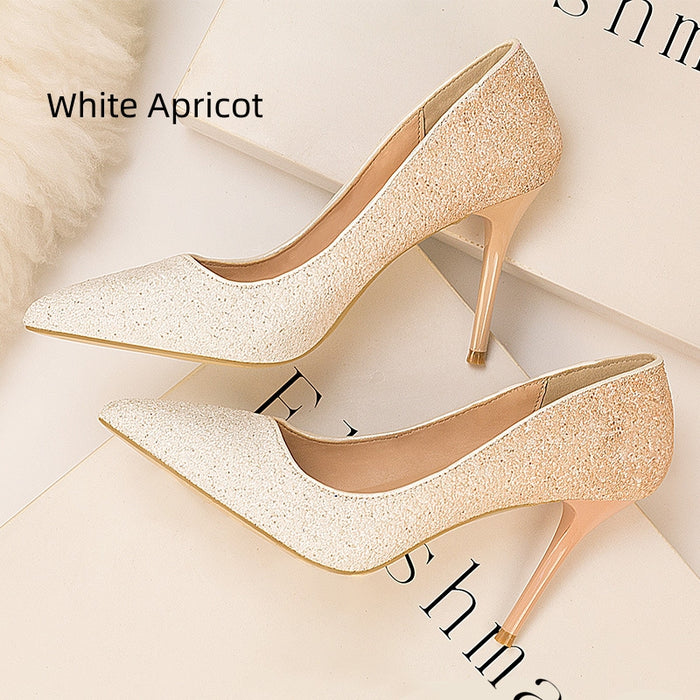 Gradual Sequined Pointed High-heeled Shoes