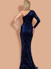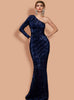 Irregular Blue Sequined Tail Banquet Dress