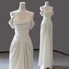 Ivory Satin Off the Shoulder Wedding Dress