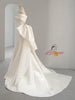 Ivory White Satin Pleats Wedding Dress