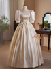 Ivory White Satin Short Sleeve Bow Wedding Dress