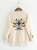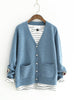 Knitted Cardigan V neck Back Flower Long Sleeve