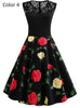 Lace Stitching Sleeveless Print Retro Dress