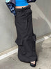 Large Pocket Splicing Low Waist Skirt
