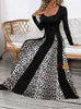Leopard Print Stitching Retro High Waist Long Sleeve Dress