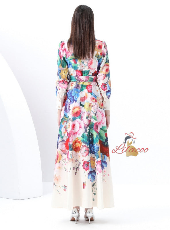 Long Sleeve Floral Print Long Dress