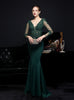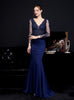 Long Sleeve V-neck Appliques Prom Dress