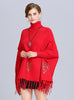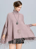 Loose High-necked Fringed Bat Sleeve Cloak Shawl