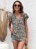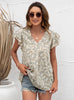 Loose V-neck Lotus Leaf Sleeve Printed Chiffon Shirt