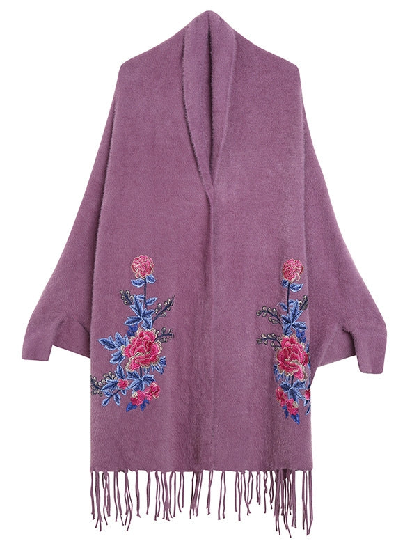 Loosely Embroidered Bat Sleeve Shawl Cloak
