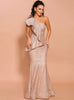 Lotus Leaf Brim Shoulder Sparkling Sequins Fishtail Dress