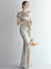 Mermaid Sequins Cap Sleeve Split Prom Dress