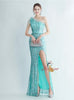 Mermaid Sequins One Shoulder Beading Split Prom Dress