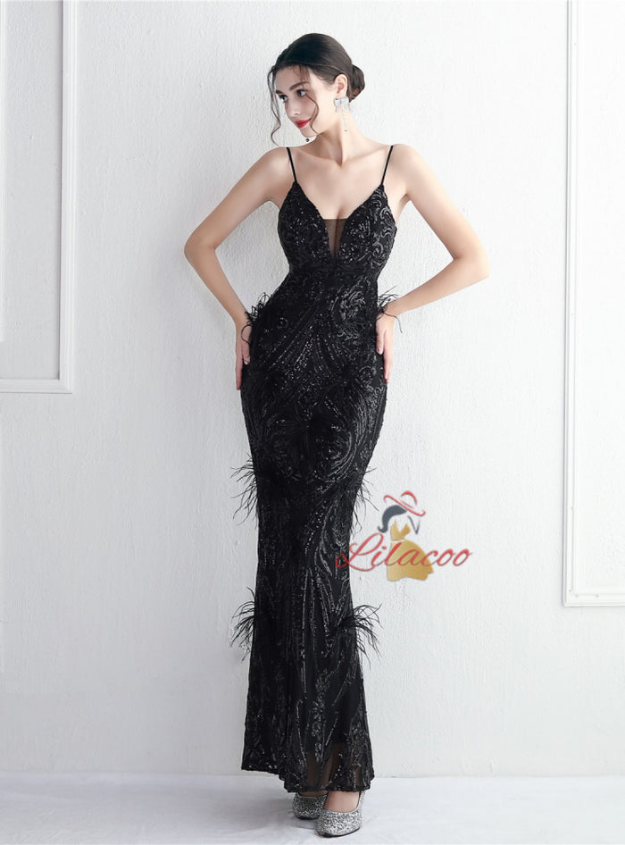 Mermaid Sequins Spaghetti Straps Prom Dress