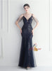 Mermaid Sequins Tulle Spaghetti Straps Beading Prom Dress