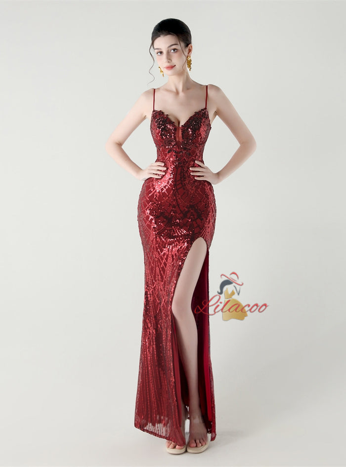 Mermaid Spaghetti Straps Appliques Prom Dress