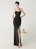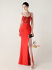 Mermaid Spaghetti Straps Appliques Split Prom Dress